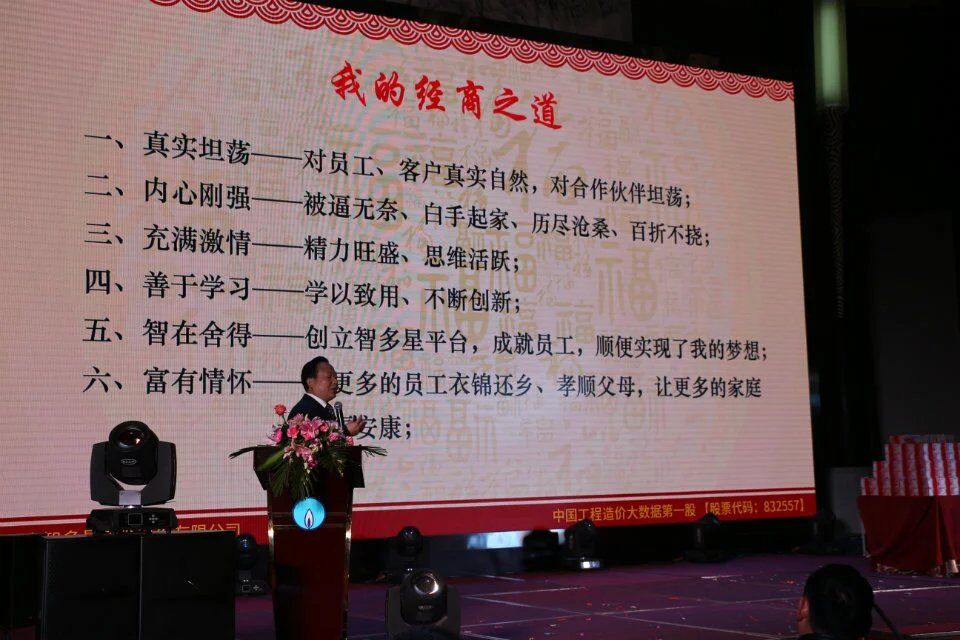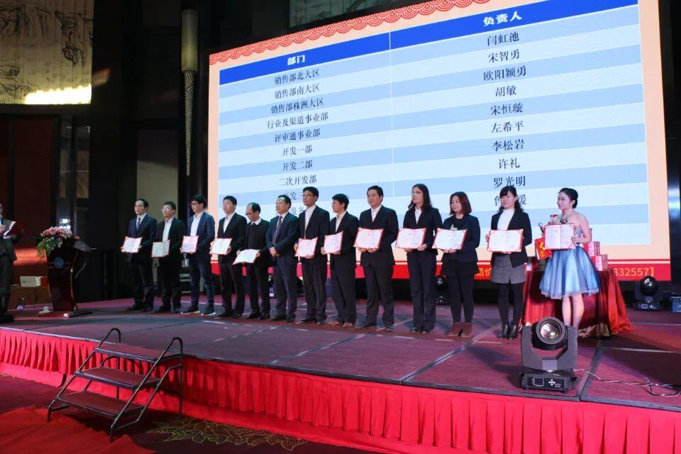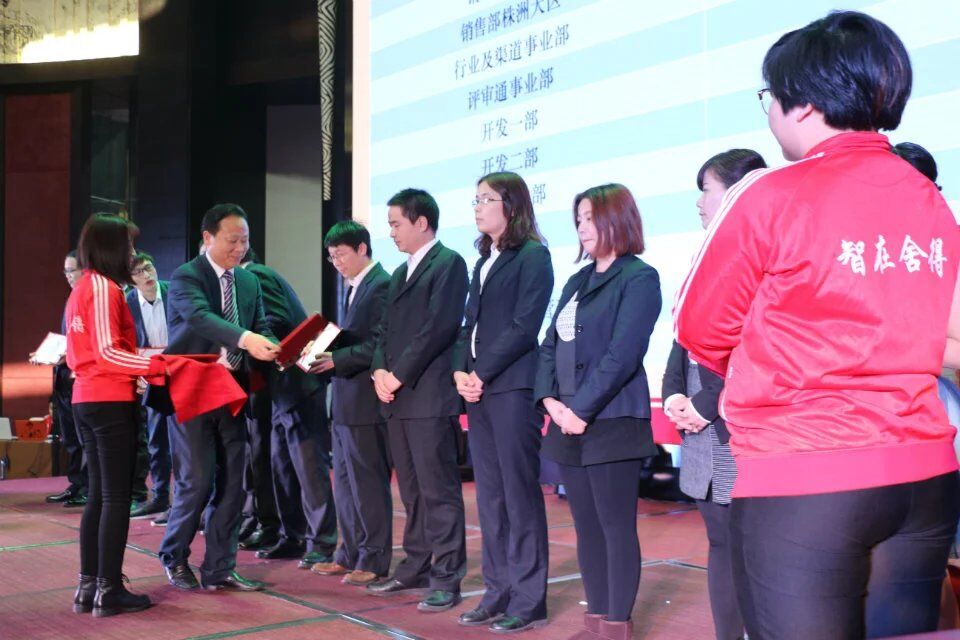 创办一家企业,最艰苦卓绝的,莫过于老板。因此,智多星全体员工为智多星企业创始人——何刚强先生颁发了“终身成就奖”,湖南省丰源水务投资建设有限责任公司审计部 曾瑛女士作为颁奖嘉宾为何总颁奖,并作为优秀客户代表作精彩发言。