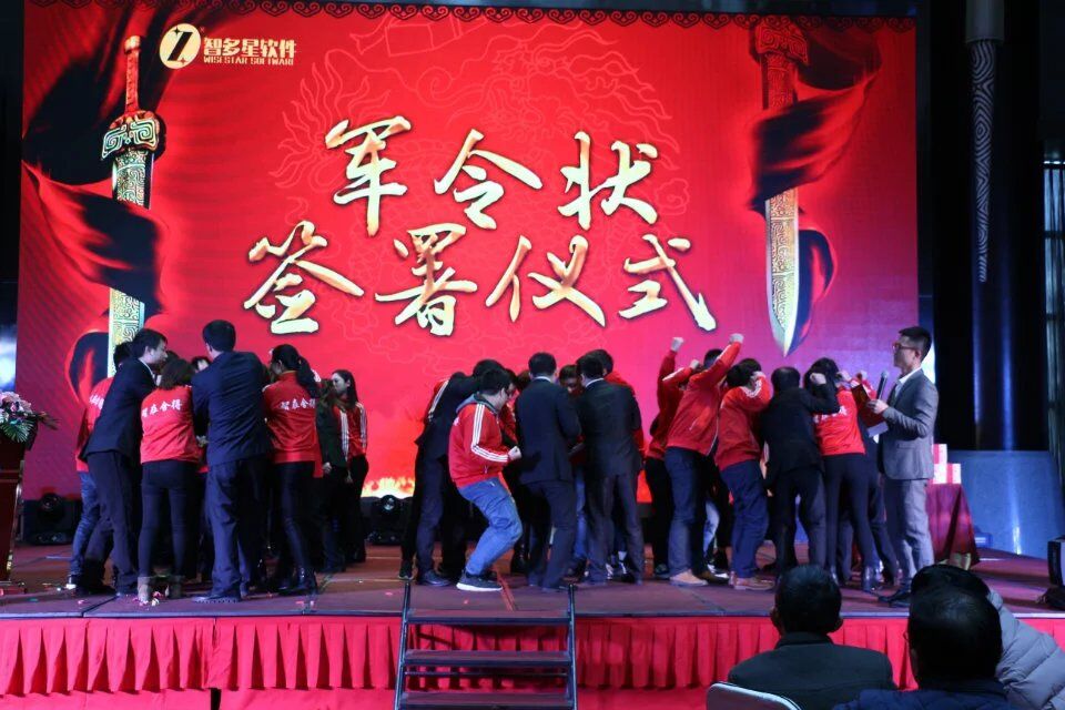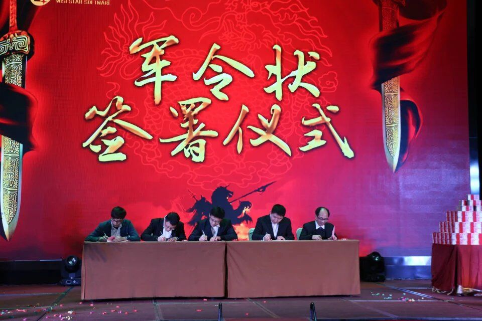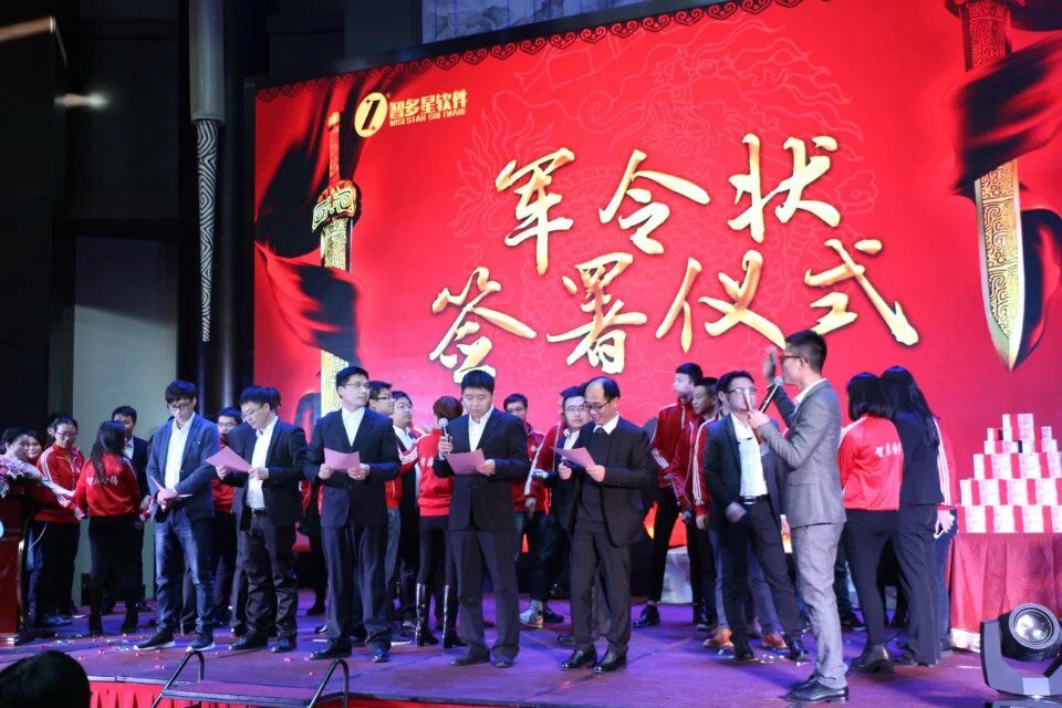 做完了目标分解,各销售部经理在大家的共同见证下签署了2017年度销售任务军令状,并当众承诺“势必达成”!