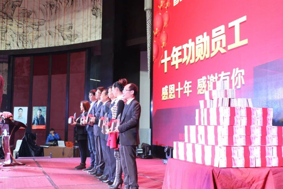 接下来,颁奖典礼颁发的第一个奖项——十年功勋合伙人奖,台上六位功勋员工在智多星工作已经超过十年时间,从青涩到成熟,从基层到骨干,他们参与了智多星一步步成长的过程,将自己最青春、烂漫的十年奉献给了智多星!十年同行,感恩有你!