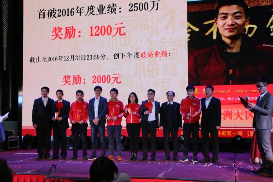 2016年度优秀员工——优秀销售精英奖。他们将分别获得6000元学习基金和6000元出国旅游基金,他们的父母还获得价值3000元的旅游基金以及2000元的学习基金。