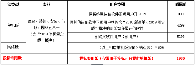 1.同一单位一次性购买智多星软件产品30000元(含)以上,且不参加每30000元可免费赠送智多星新版计价软件一套。