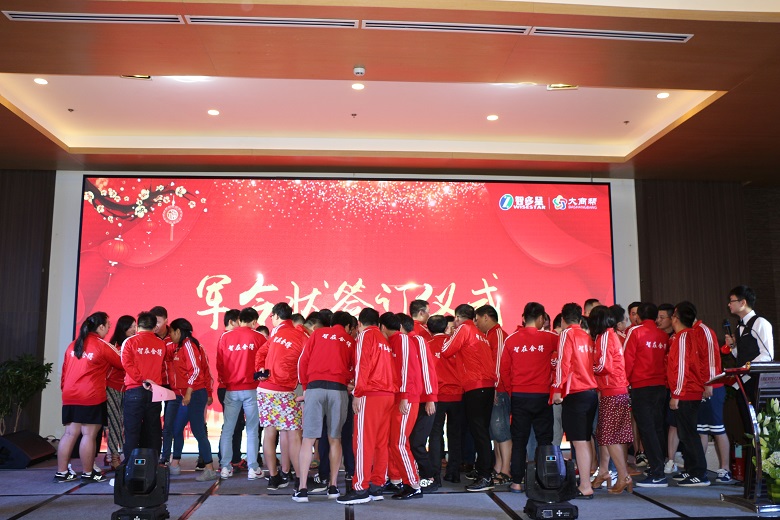 新的“领导班子”已经确定,接下来就要当众签订2019年度目标任务了。在丰厚的奖金面前,各销售部摩拳擦掌,要在2019年大干一场!