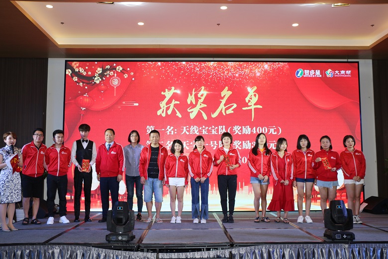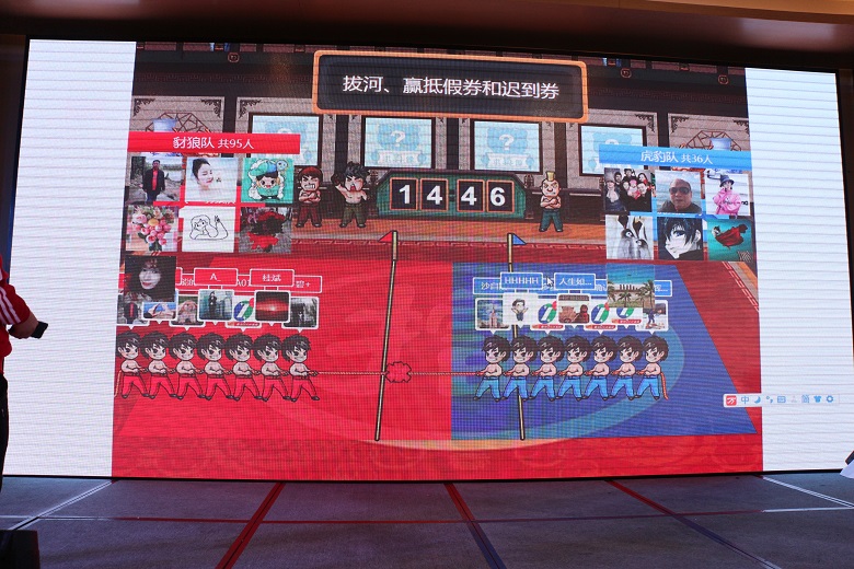 由公司自主研发的大商帮商协会运营管理系统也为年终晚宴增添了绚丽的色彩,不仅有炫酷的签到抽奖功能,还有很多好玩有趣的比赛项目,现场观众通过手机微信摇一摇参加拔河比赛赢迟到券和抵假券,何总还赞助了壹万元通过系统抽现金红包,排名前三的销售部也赞助了陆千元红包,嗨爆了全场!