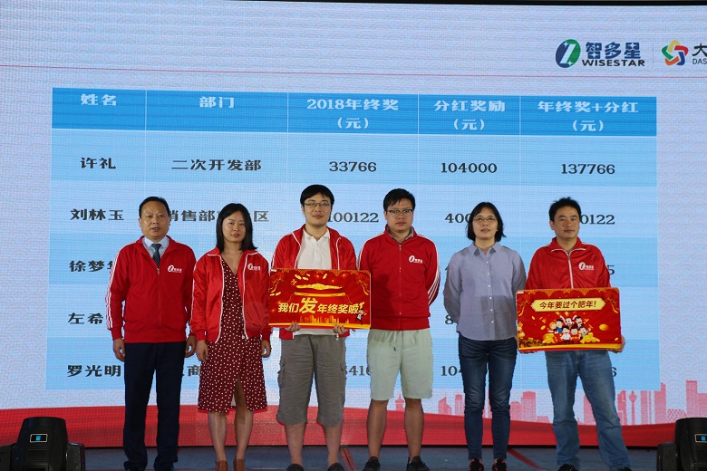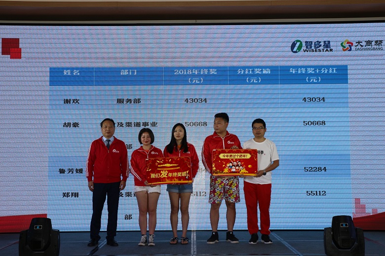 发红包啦!这是智多星年终晚宴的必备环节,何总亲自挨个发红包!看,笑得多欢哪!