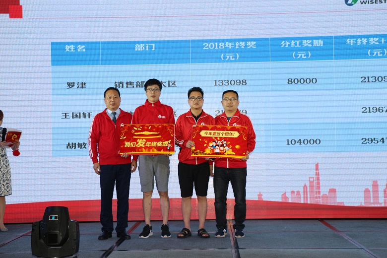 年终奖的发放是一个无比欢乐的环节。超过2W的小伙伴都有机会上台秀一番。看,金额越来越大了哦!