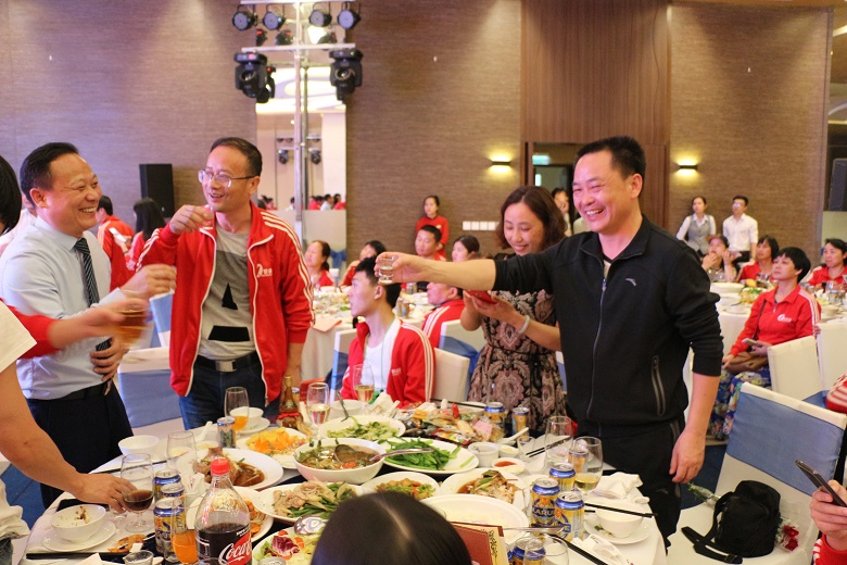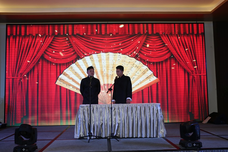 越南海关对旅客的行李物品检查甚严,很多物资无法顺利入境,但我们年会现场的布置一点也不输国内气派!